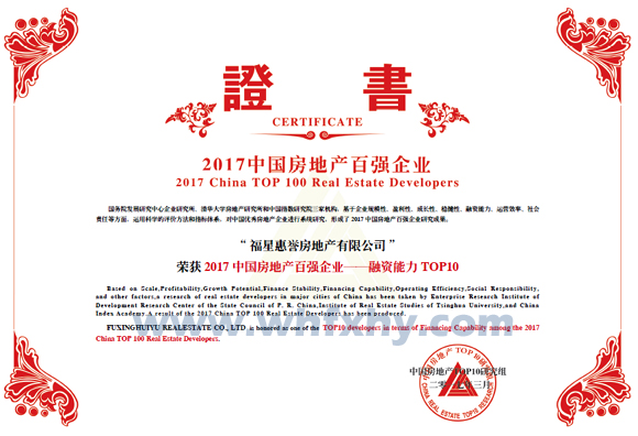 福星惠譽(yù)房地產(chǎn)有限公司蟬聯(lián)“2017中國(guó)房地產(chǎn)公司品牌價(jià)值TOP20”和“2017中國(guó)房地產(chǎn)綜合開(kāi)發(fā)專(zhuān)業(yè)領(lǐng)先品...