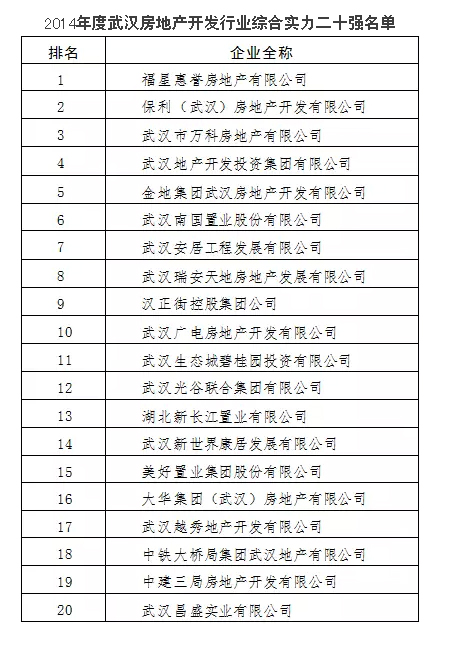 2014年度武漢房地產開發行業綜合實力前二十強名單出爐。福星惠譽地產,連續7年位列武漢房企綜合實力第一名。