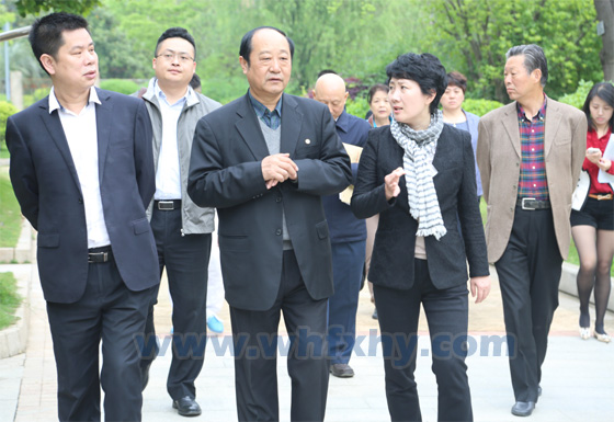 考察團(tuán)在物業(yè)董事長張詠梅和辦公室主任倪擴(kuò)斌陪同下參觀水岸星城小區(qū)