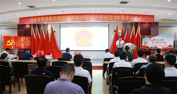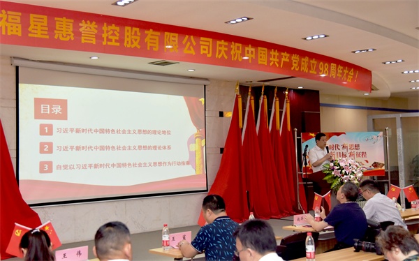 在會上,全體黨員合唱國歌,福星惠譽黨總支副書記兼第一支部書記涂國仿帶領全體黨員重溫入黨誓詞,福星惠譽第二支部書記姚澤春帶領全體黨員集體誦讀黨章。