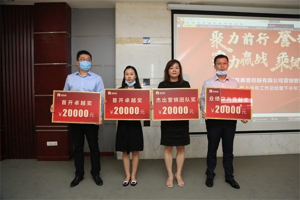 大會(huì)通報(bào)了2020年上半年經(jīng)營目標(biāo)總體完成情況及考核兌現(xiàn)內(nèi)容,由月亮灣壹號(hào)、東湖城拾光項(xiàng)目營銷總監(jiān)對項(xiàng)目首開分別進(jìn)行了復(fù)盤,從多角度分享了各自成功經(jīng)驗(yàn)和心得體會(huì)。會(huì)上對綜合完成率末位的項(xiàng)目也分析了具體原因,做了認(rèn)真的反思總結(jié)。隨后,董事長譚少群親自為2020年上半年的優(yōu)秀營銷團(tuán)隊(duì)頒發(fā)了獎(jiǎng)牌。